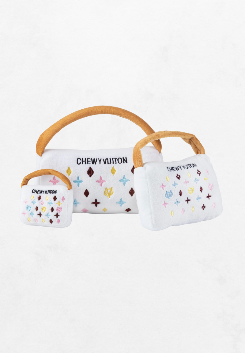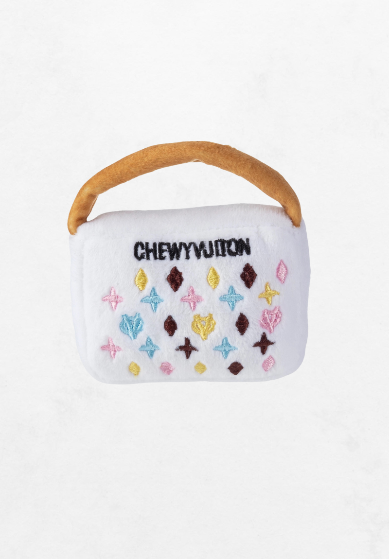Za prave pseće fashionistice – White Chewy Vuiton Purse Toy iz našeg online shopa za pse pravi je hit koji osvaja na prvi pogled!
